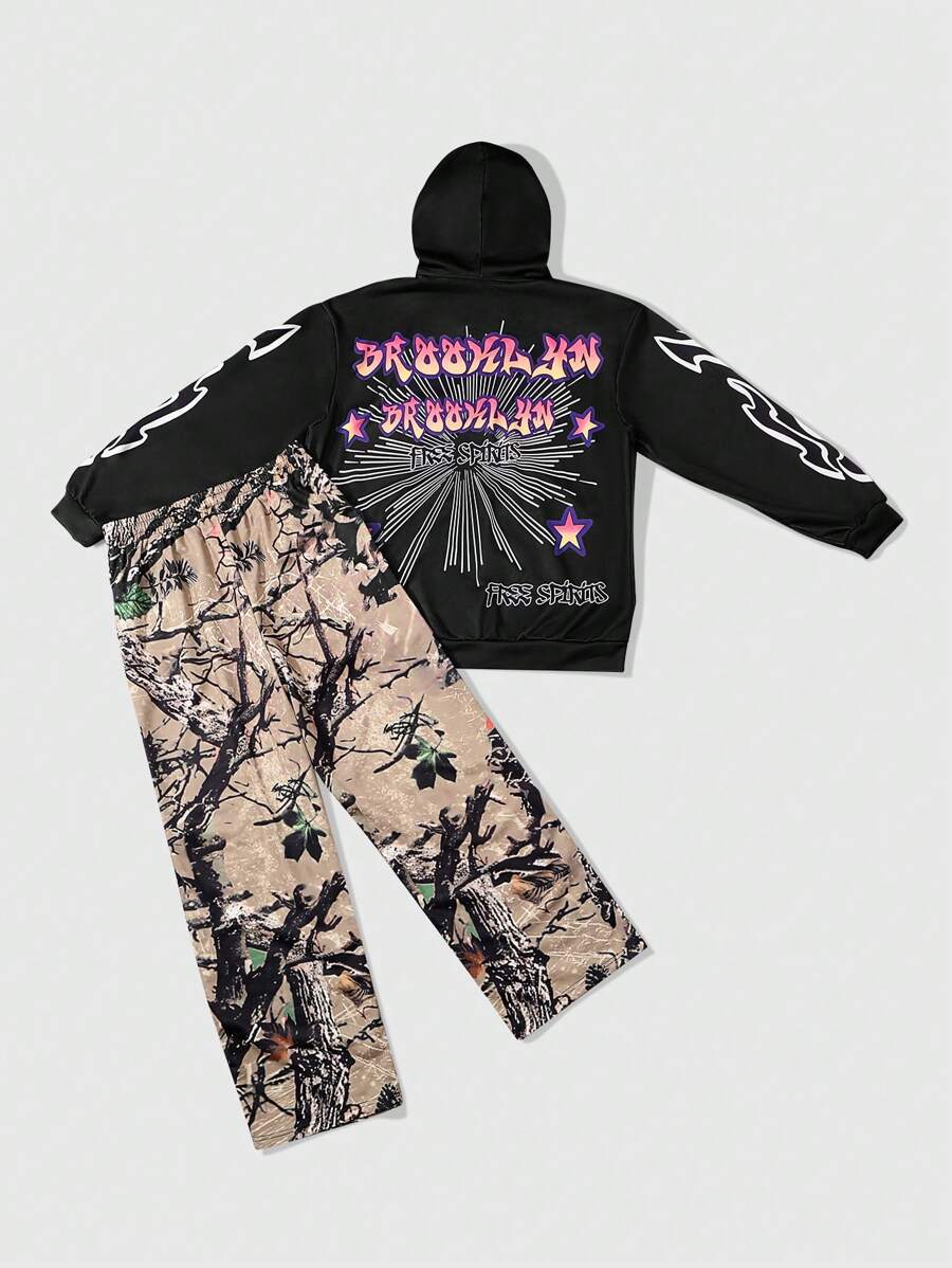 Street Life Men 2pcs Set Casual Letter Print Hoodie Sweatshirt And Pants Tracksuit