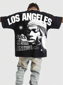 Street Life Men Batwing Sleeve Print Short Sleeve T-Shirt, Suitable For Daily Wear In Spring And Summer