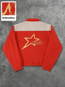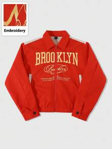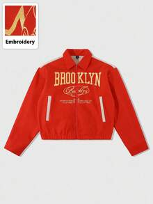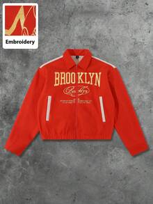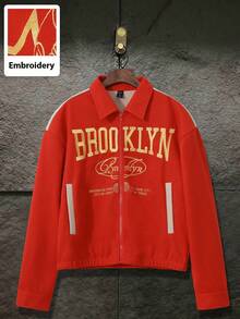Street Life Men Casual Fashionable Street American English Graphic Print Zip-Up Jacket, Fall