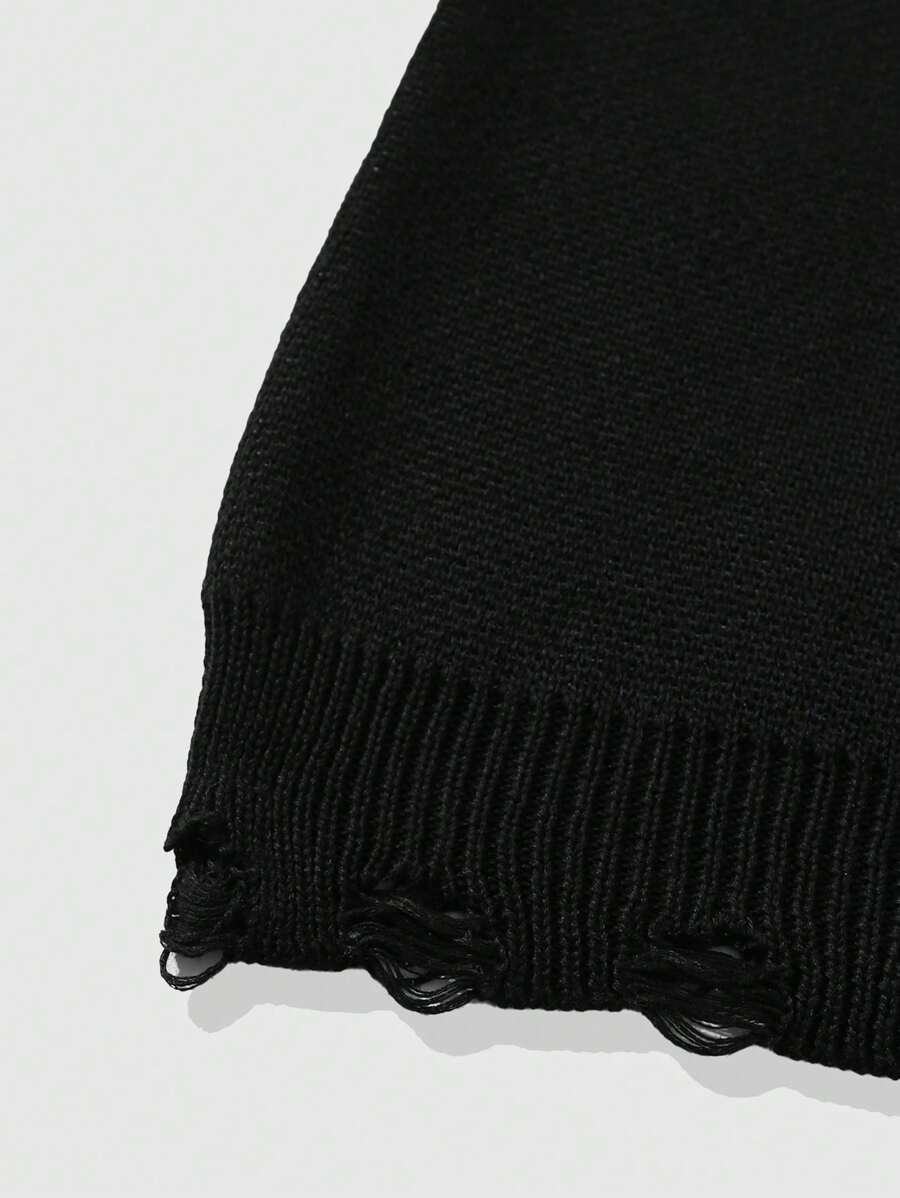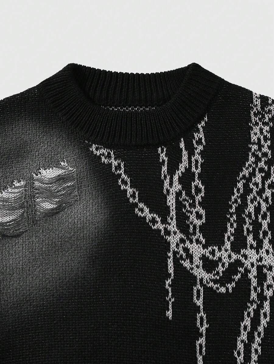 Street Life Men Distressed Jacquard Crew Neck Long Sleeve Pullover Sweater, Suitable For Spring