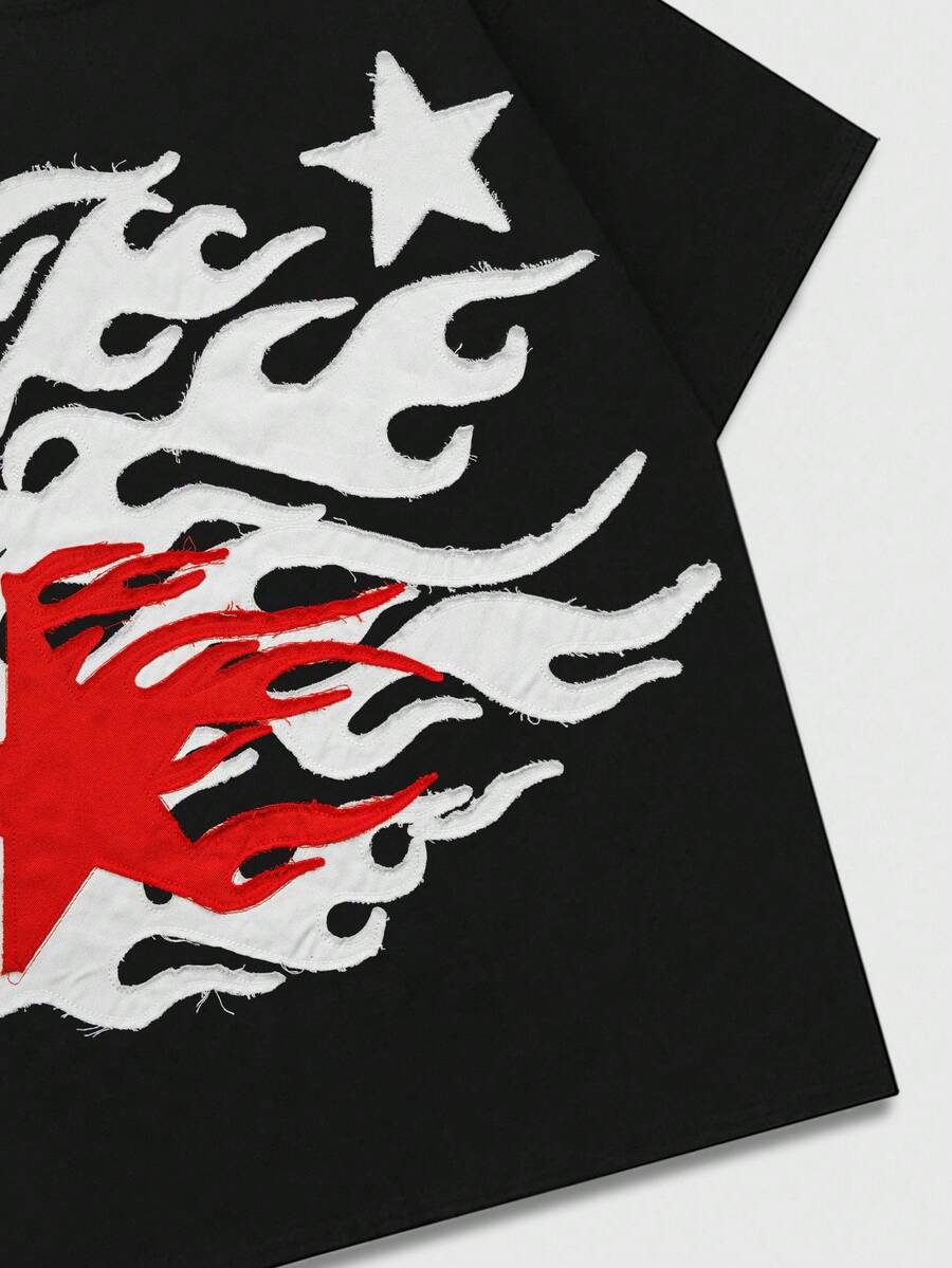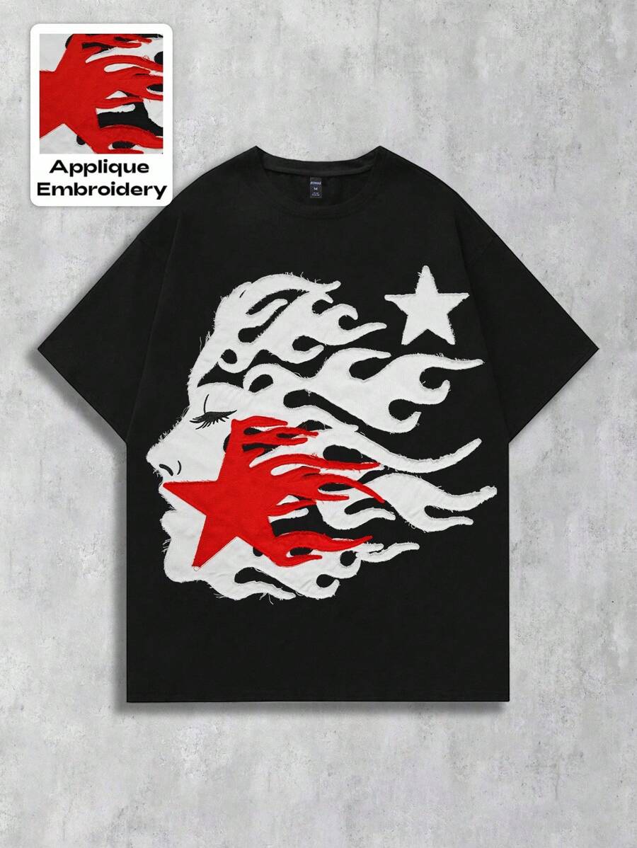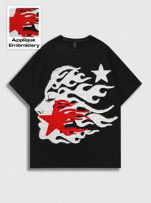 Street Life Men Embroidered Round Neck Short Sleeve T-Shirt, Unisex Couple Tee For Summer, 2000s Style