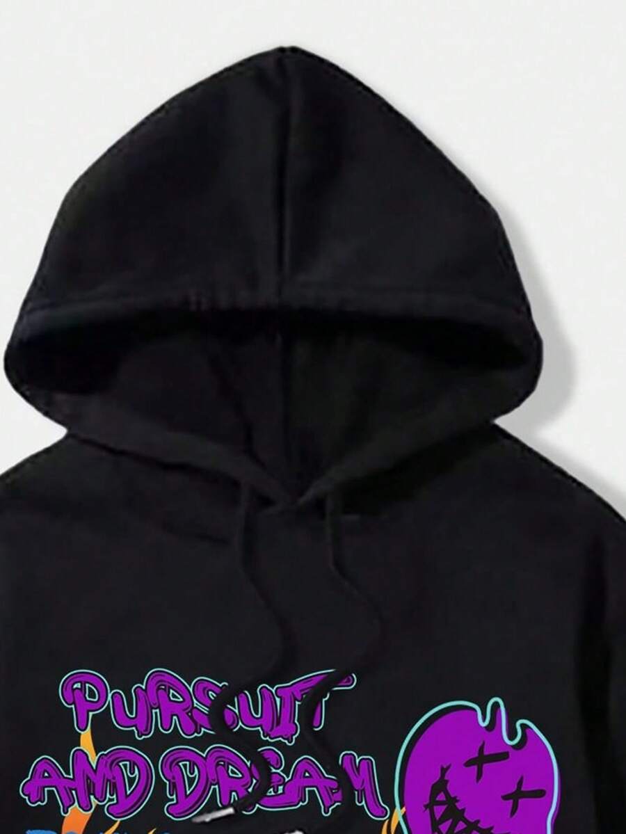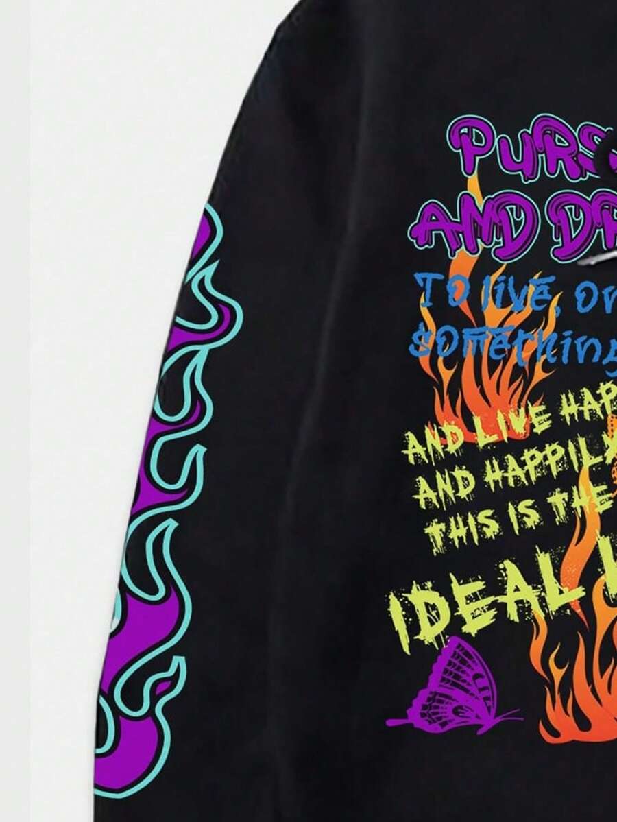 Street Life Men Fire Slogan Graphic Drawstring Hoodie