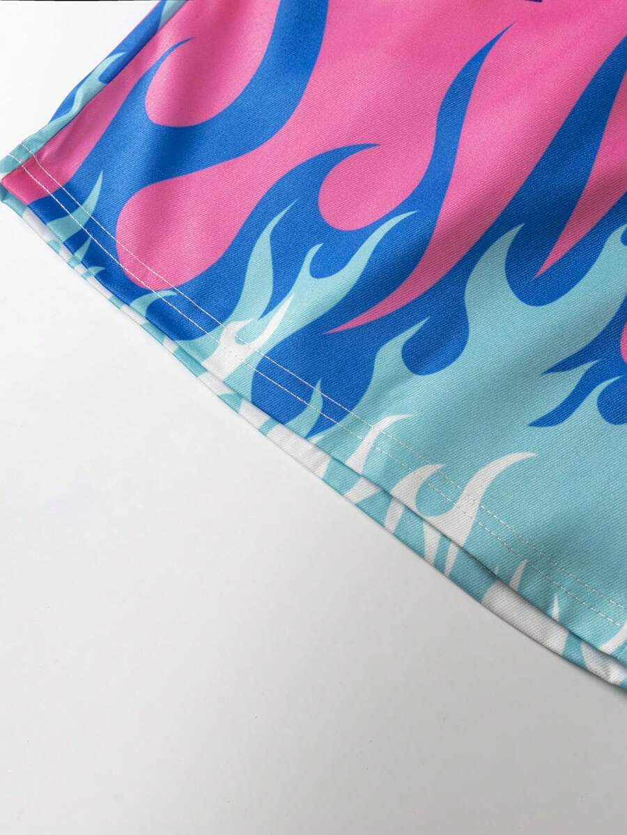 Street Life Men Flame Slogan Print Shorts, Suitable For Everyday Wear In Spring And Summer