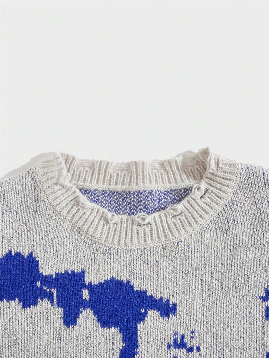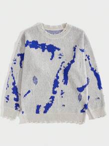 Street Life Men Graphic Pattern Distressed Drop Shoulder Sweater