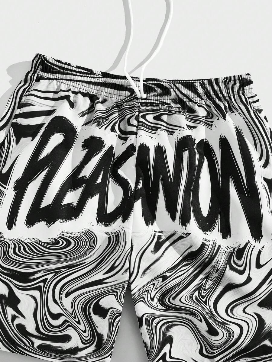 Street Life Men Letter Graphic Drawstring Waist Shorts, School