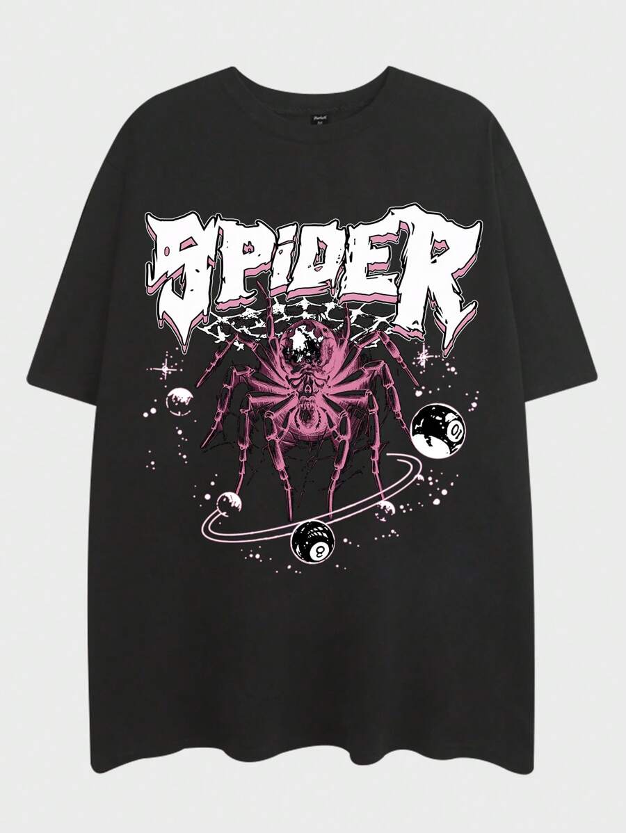 Street Life Men Letter & Spider Print Y2k T-Shirt For Halloween, School
