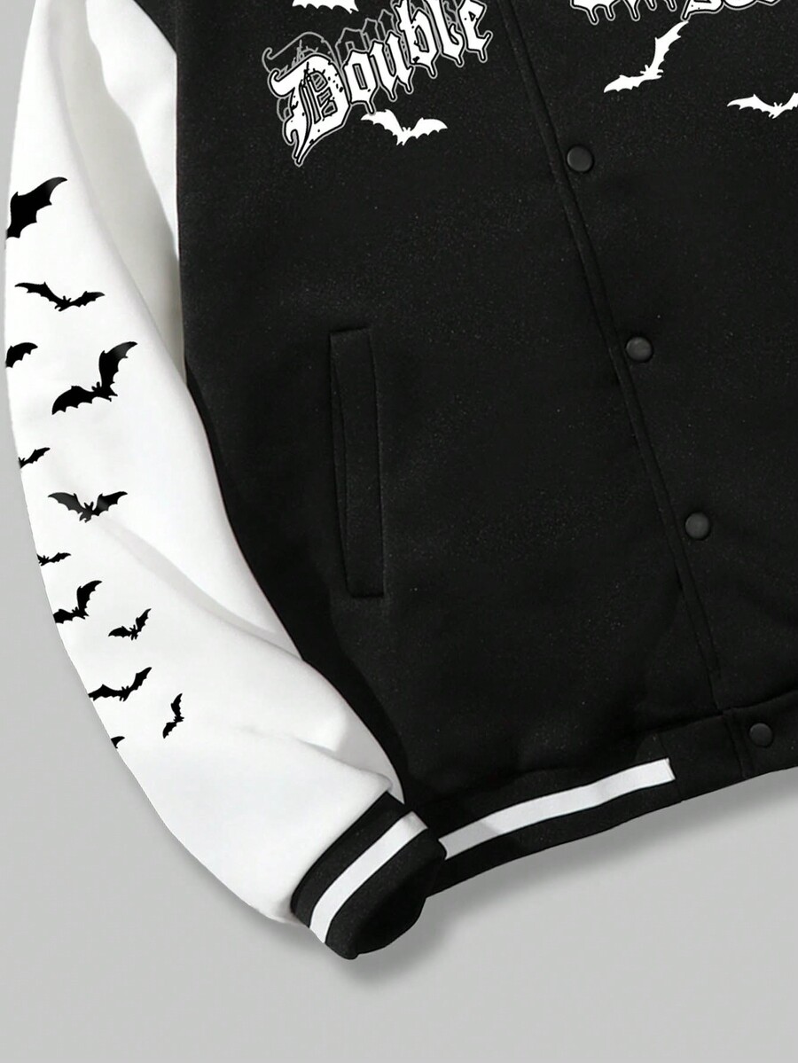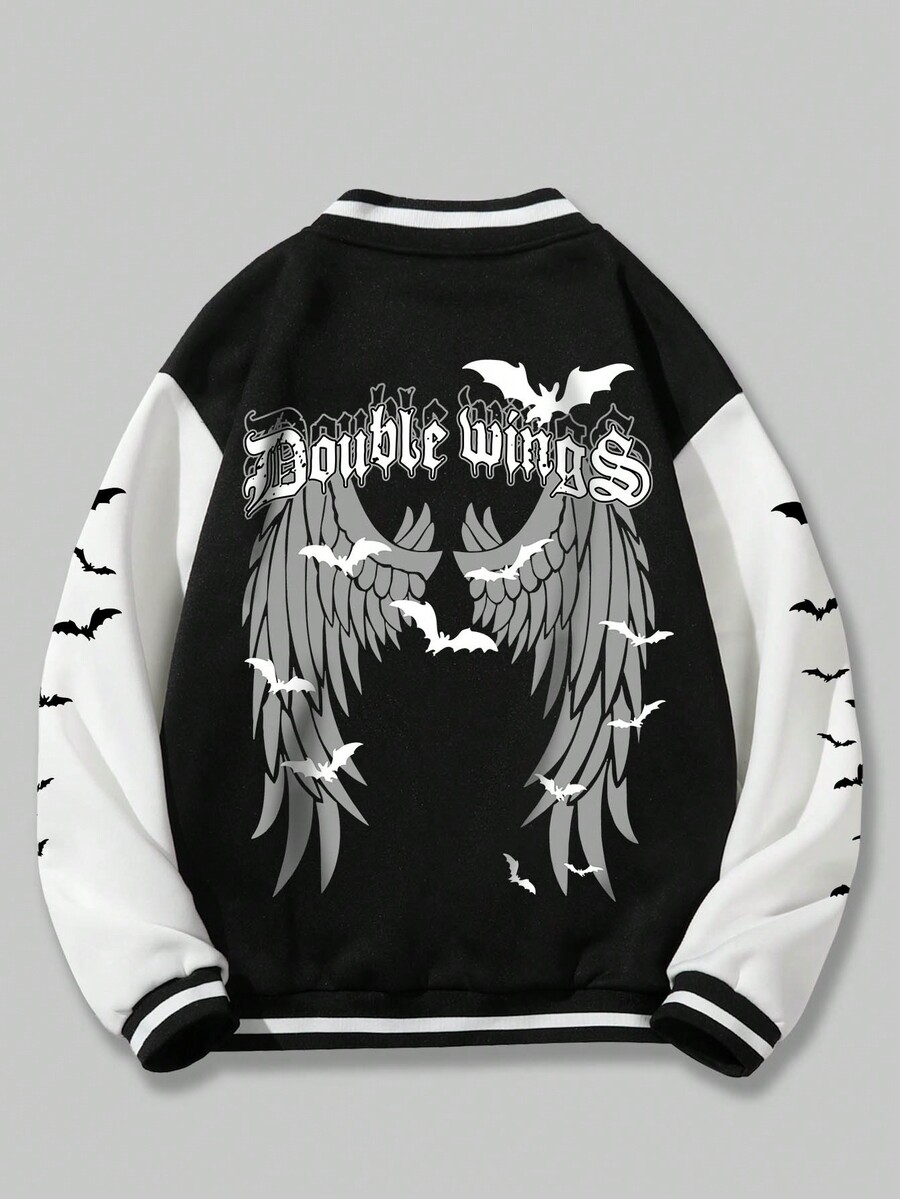 Street Life Men Letter & Wings Print Two Tone Varsity Jacket