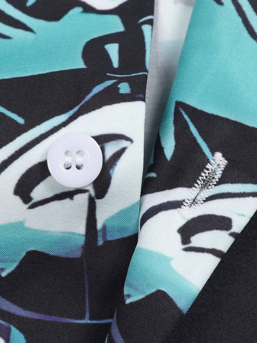 Street Life Men Movie & Cartoon Character Printed Short Sleeve Button Up Shirt, Vacation Style, Suitable For Spring And Summer