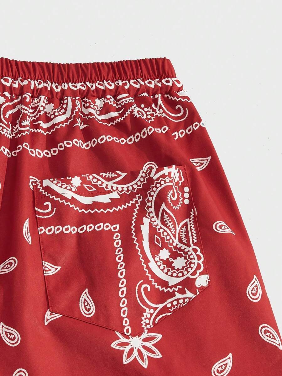 Street Life Men Paisley Print Drawstring Waist Cargo Pants, School