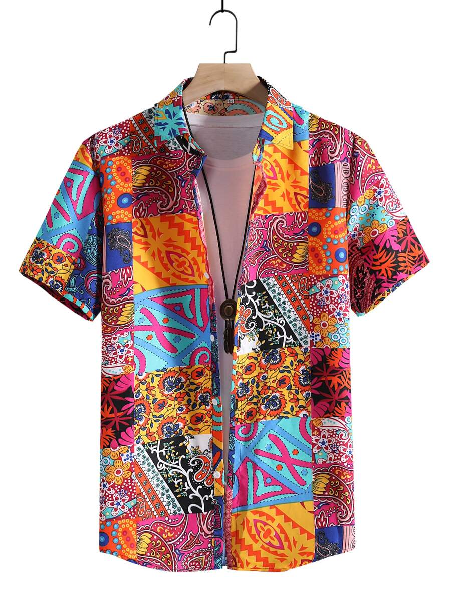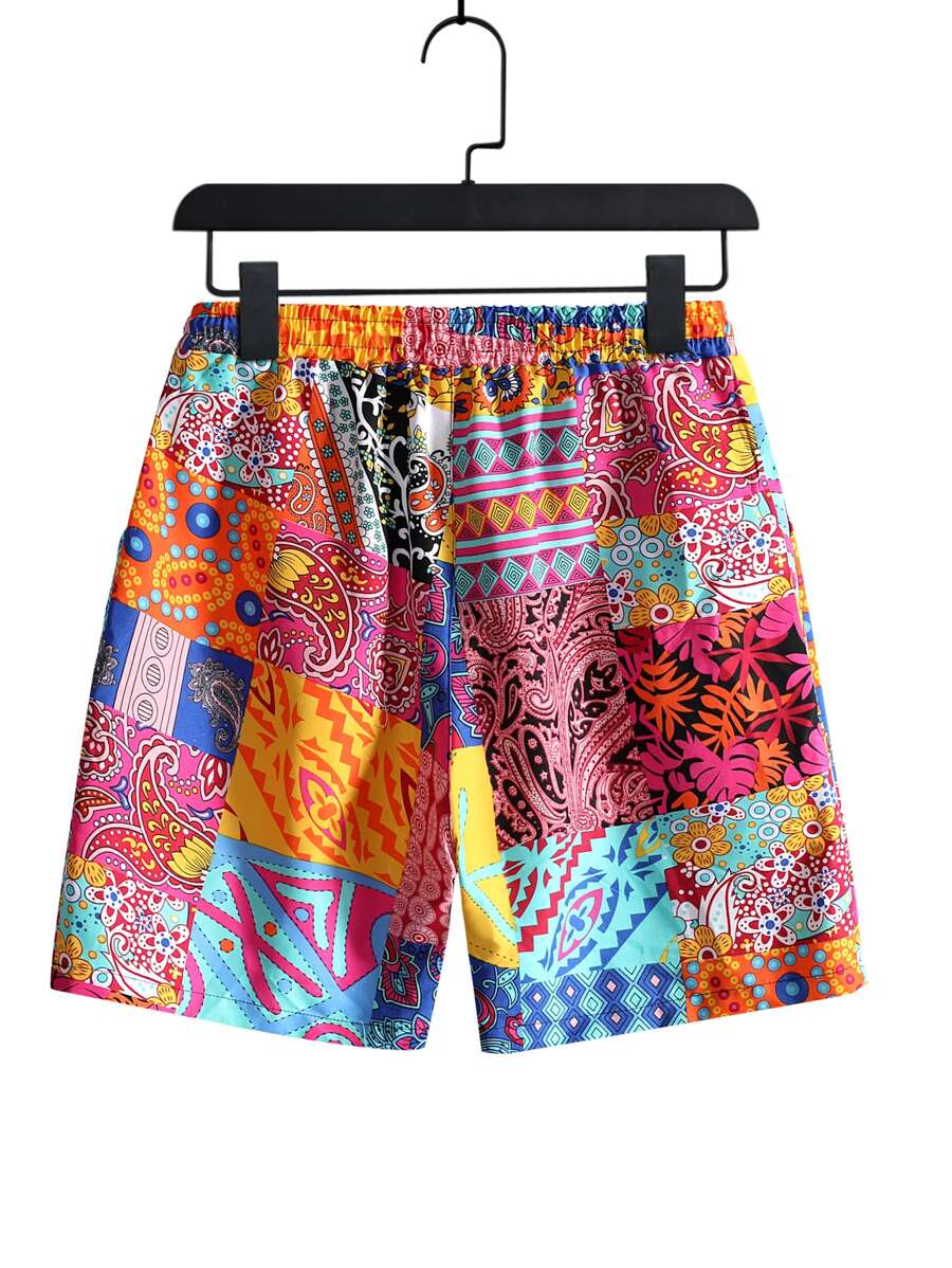 Street Life Men Patchwork Shirt & Drawstring Shorts Without Tee, School