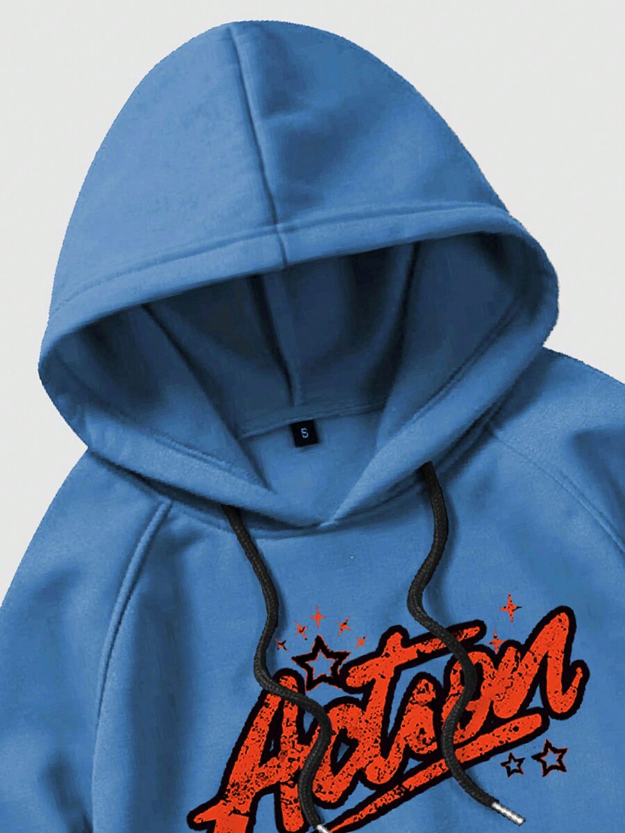 Street Life Men Simple Printed Hooded Sweatshirt And Sweatpants Two-Piece Set