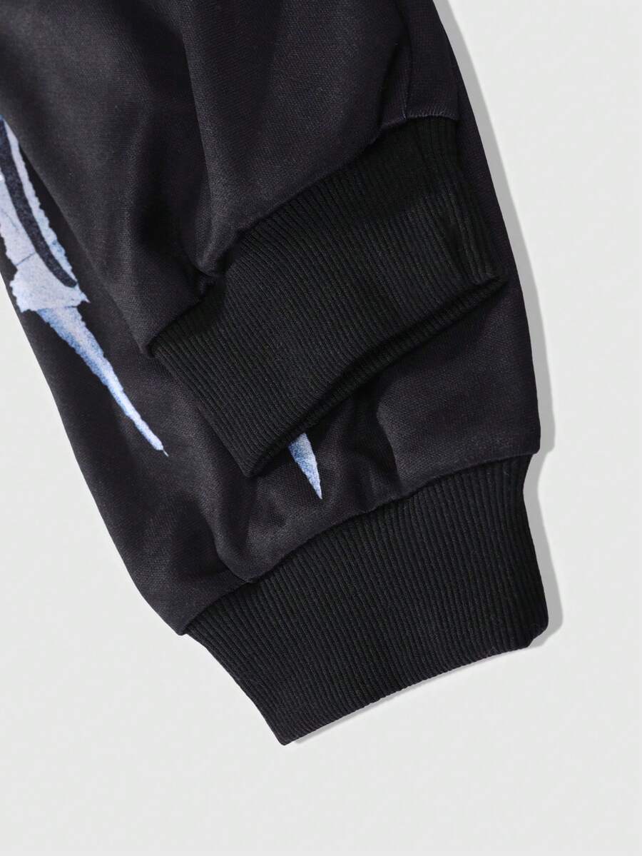 Street Life Men Skeleton Printed Long Sleeve Zipper Fashionable Hip-Hop Hooded Sweatshirt, School