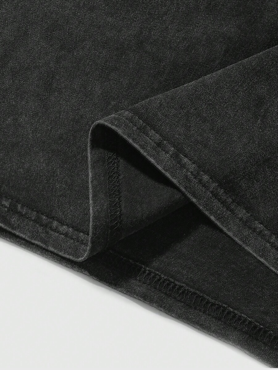 Street Life Men Snow Wash Vintage Slogan Graphic Drop Shoulder Y2k T-Shirt, School