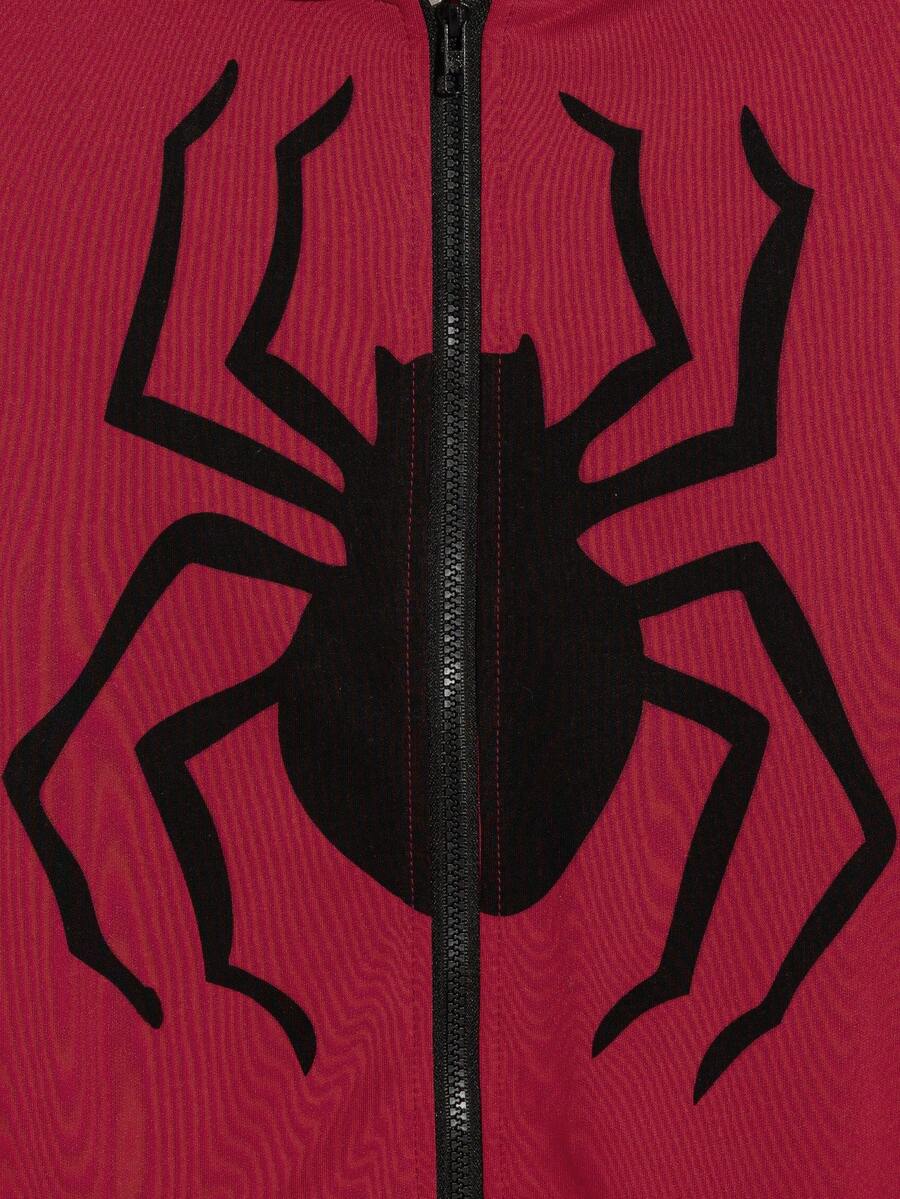 Street Life Men Spider Web Print Zip Up Drawstring Thermal Lined Hoodie