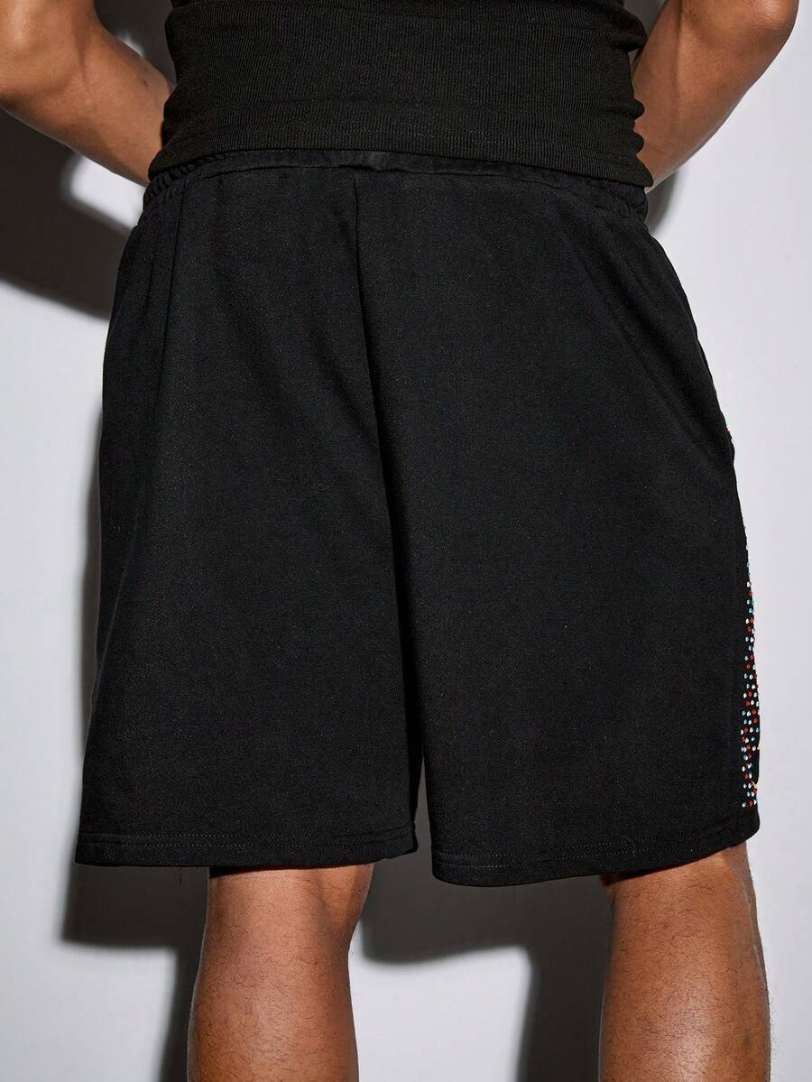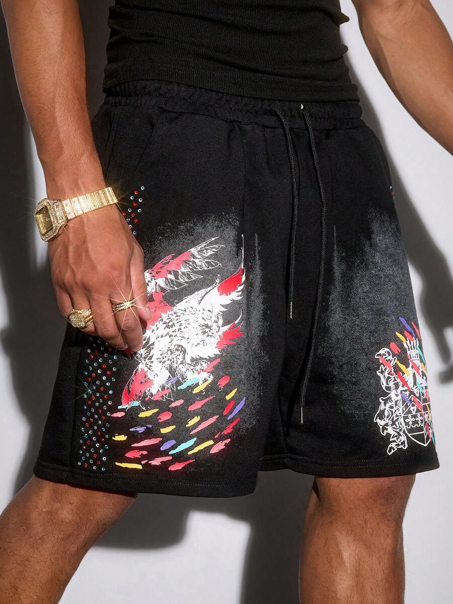 Street Life Men Street Eagle Print Rhinestone Drawstring Waist Shorts