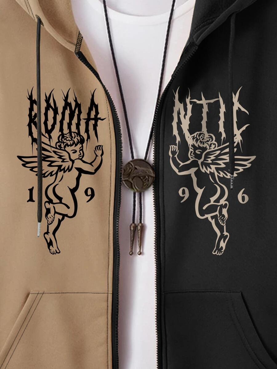 Street Life Men Two Tone Letter Graphic Drawstring Thermal Lined Hoodie