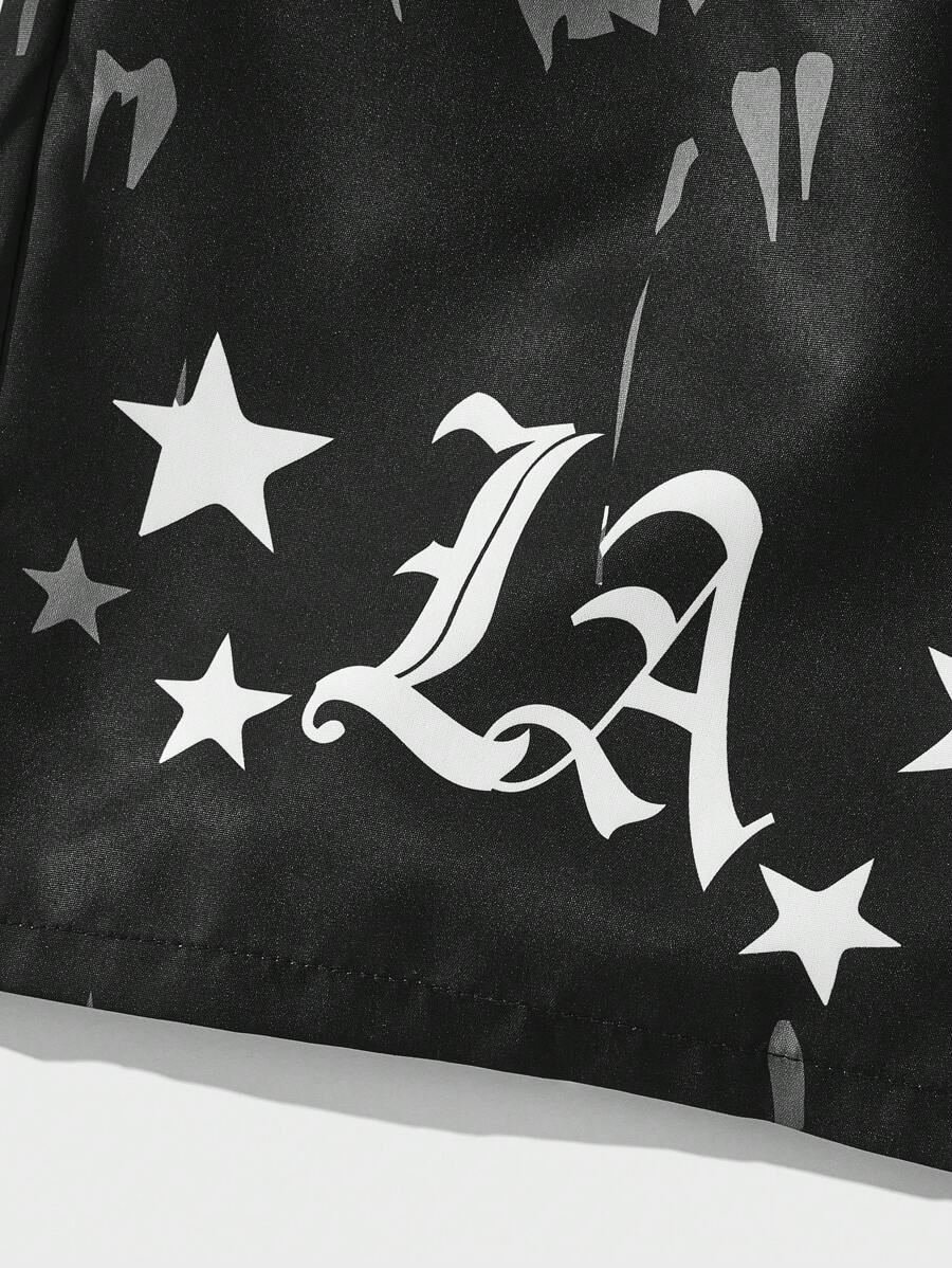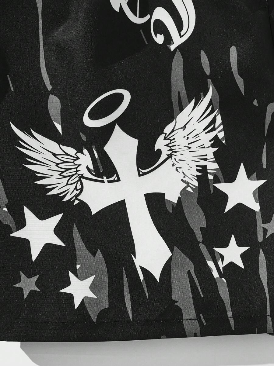 Street Life Men Wings & Letter Graphic Drawstring Waist Shorts, School