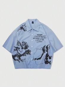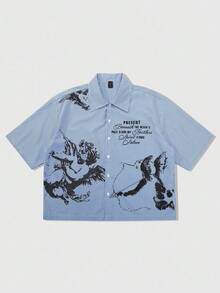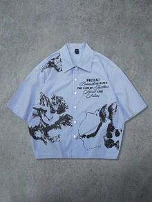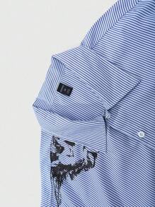 Street Life Men's Angel Print Striped Casual Versatile Shirt