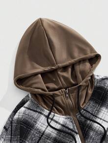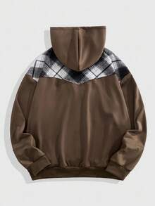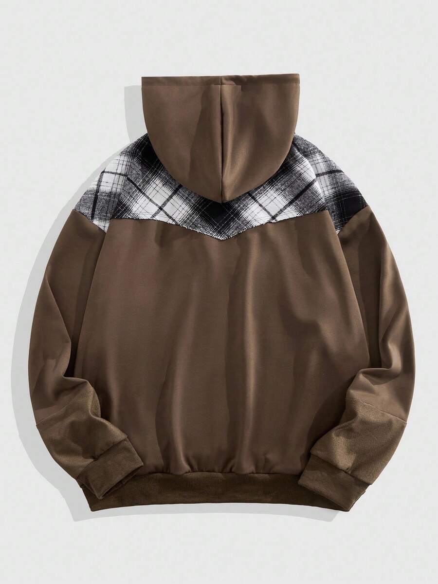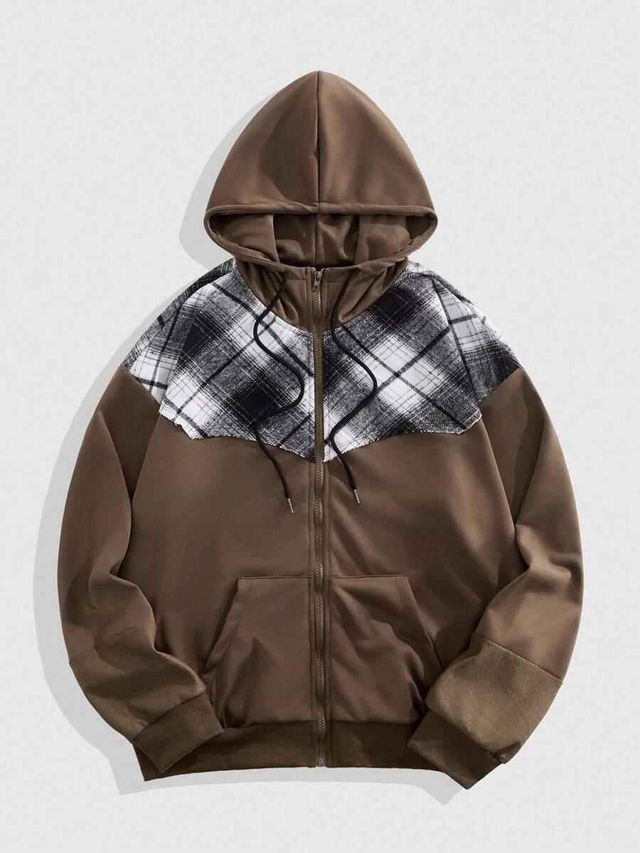 Street Life Men's Autumn Patchwork Plaid Long Sleeve Zip Front Pocket Drawstring Hooded Sweatshirt