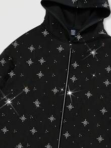 Street Life Men's Autumn/Winter Rhinestone Embellished Casual Couple Sweatshirt Hoodie Jacket
