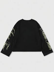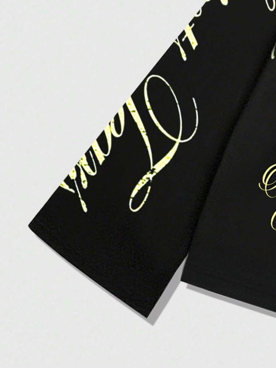 Street Life Men's Black Letter Print Crew Neck Long Sleeve Casual T-Shirt, Autumn/Winter