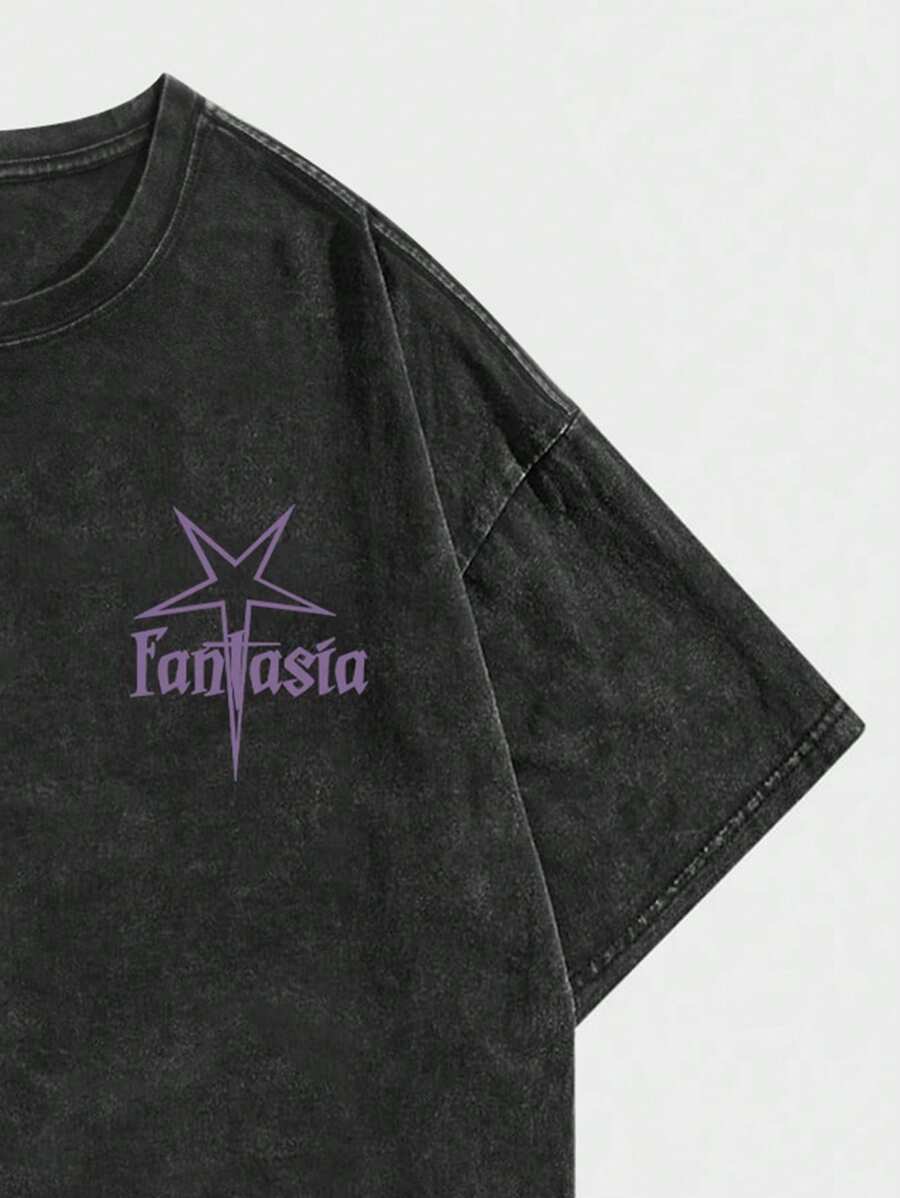 Street Life Men's Casual Acid-Washed Slogan Print Short Sleeve T-Shirt, Summer