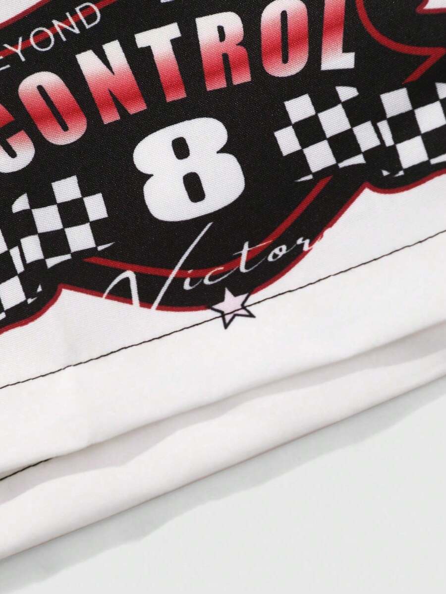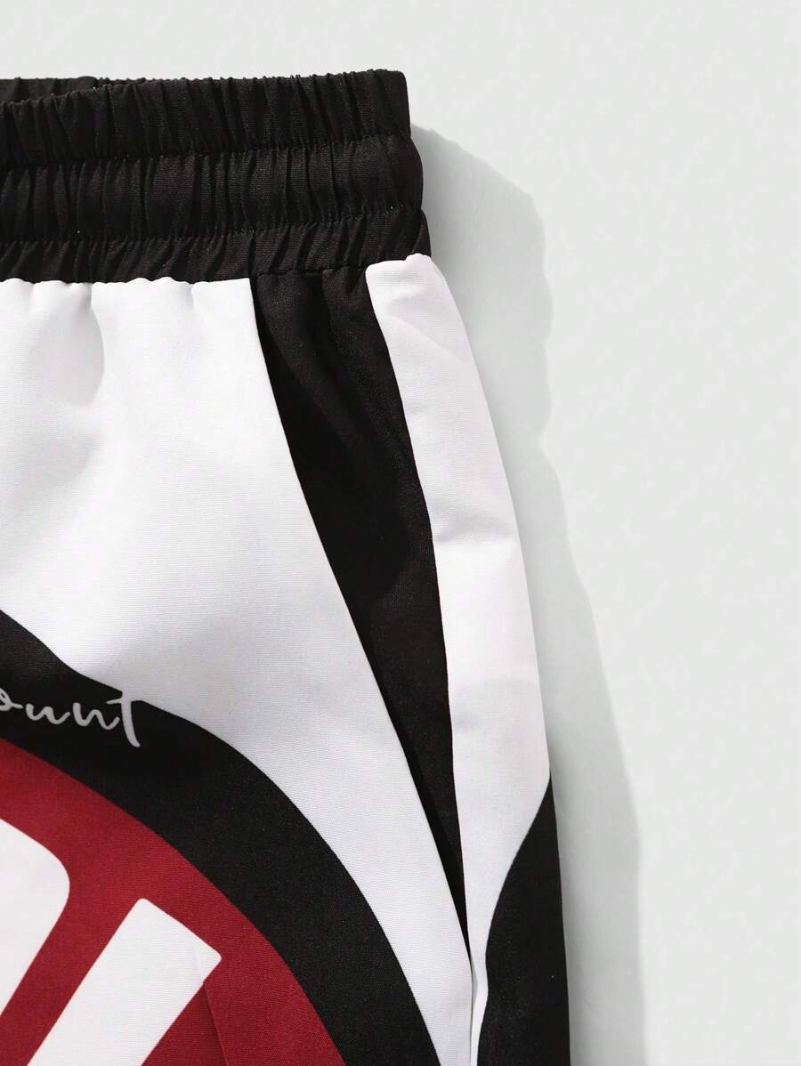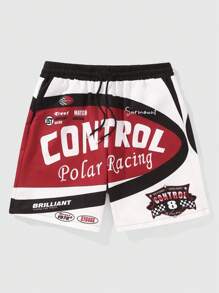 Street Life Men's Casual Colorblock Racing Letters Printed Basketball Shorts For Daily Wear, School