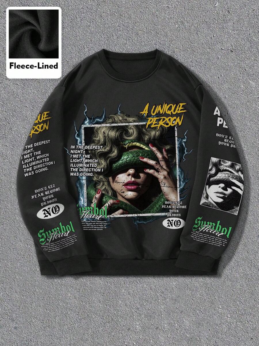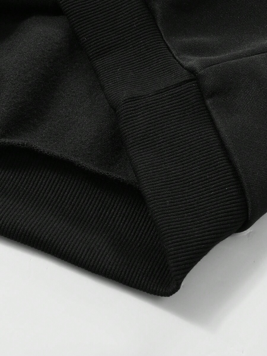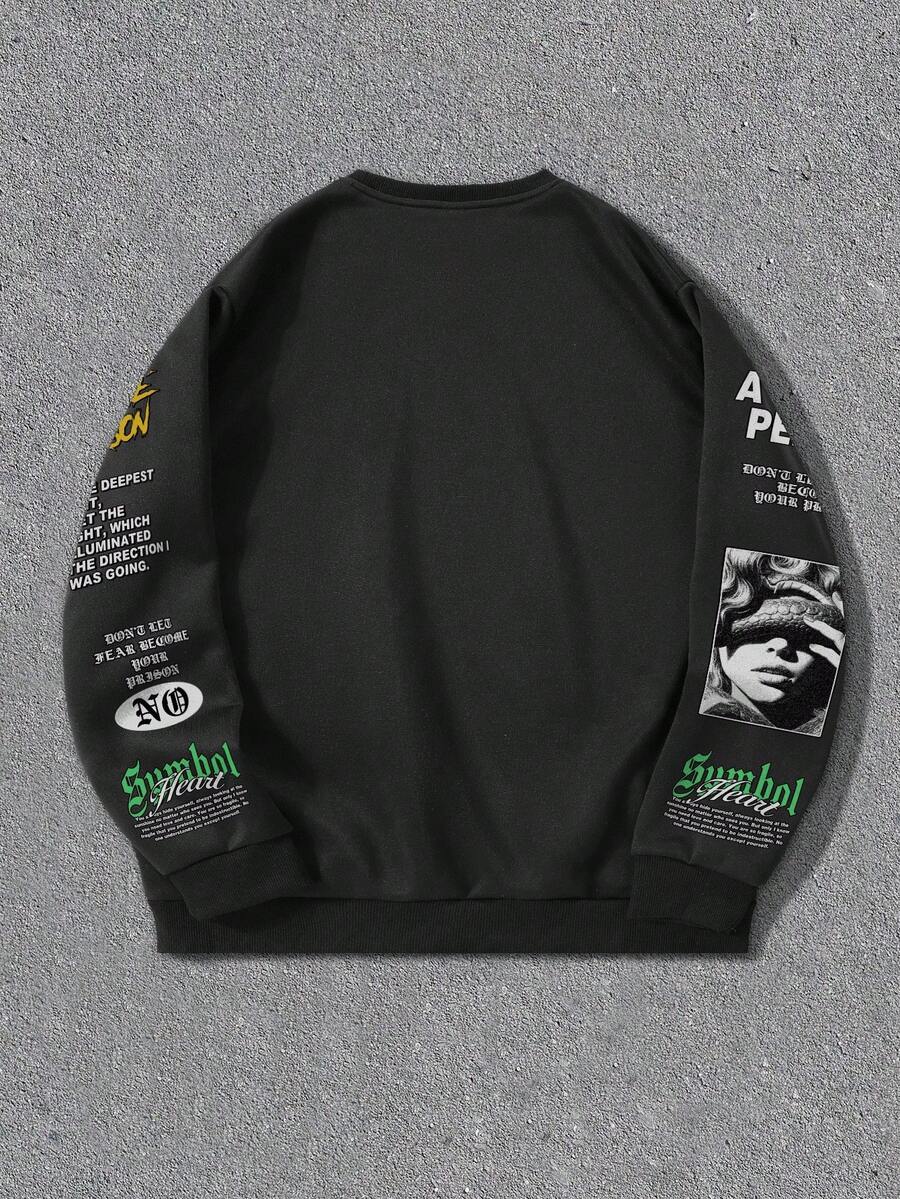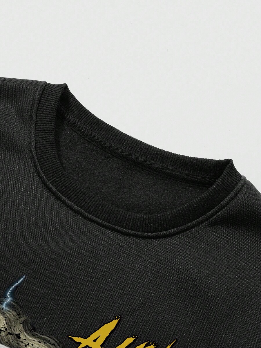 Street Life Men's Casual Comfortable Fashionable Black Crew Neck Sweatshirt With Printed Pattern, Autumn/Winter