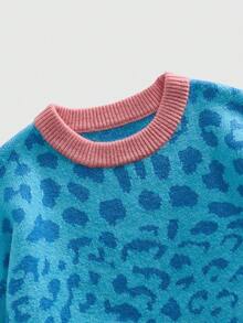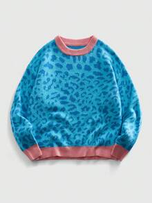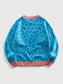 Street Life Men's Casual Contrast Trim Leopard Jacquard Knit Sweater, Autumn/Winter
