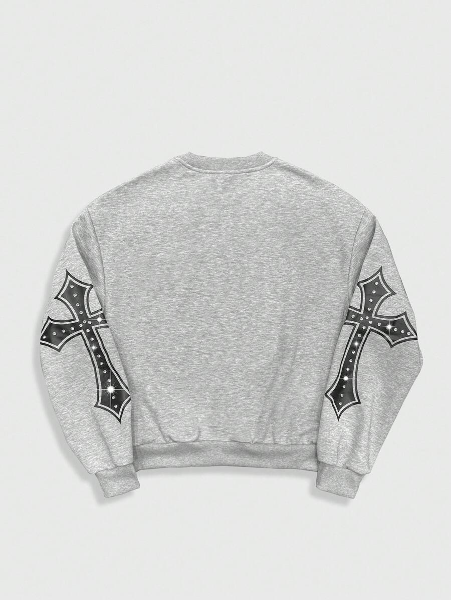 Street Life Men's Casual Cross Print Round Neck Long Sleeve T-Shirt, Autumn