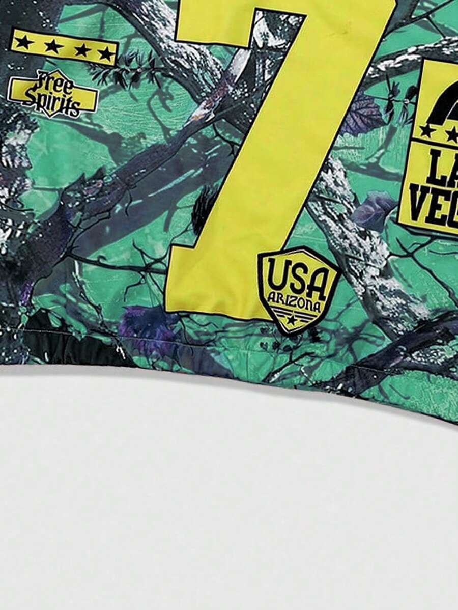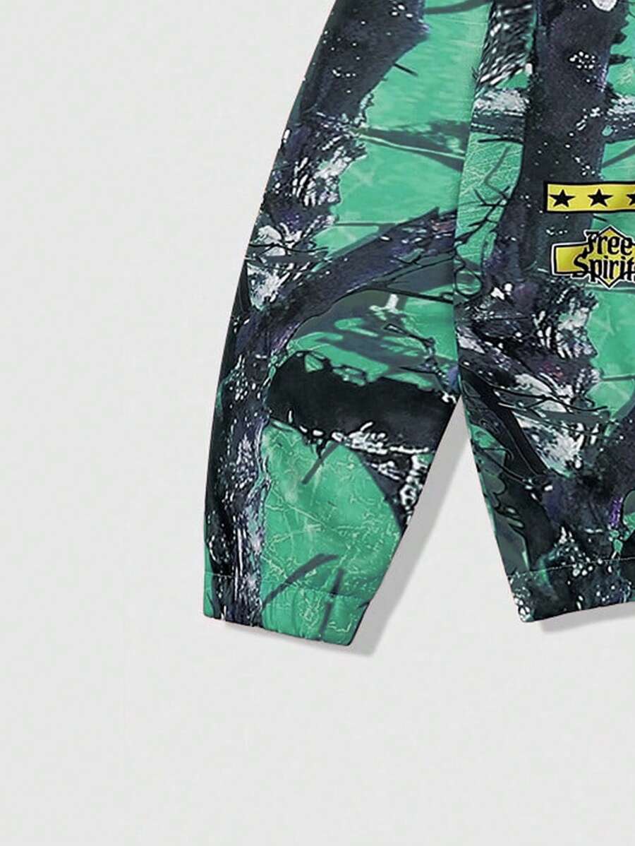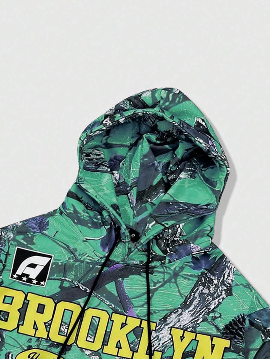 Street Life Men's Casual Everyday Branch & Letter Print Drawstring Hoodie Sweatshirt, Autumn