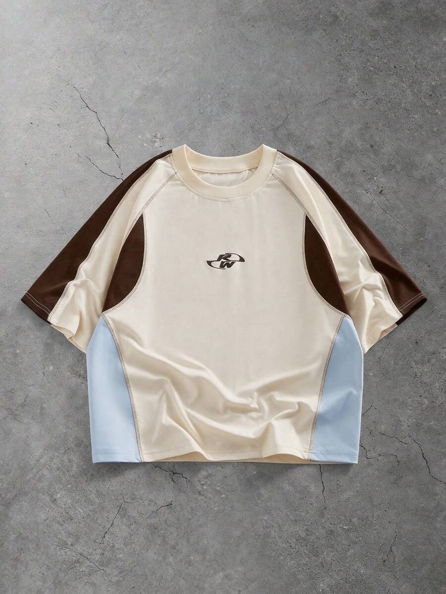Street Life Men's Casual Fashion Street Daily Commute Letter Print Contrast Raglan Sleeve Loose T-Shirt, Summer
