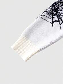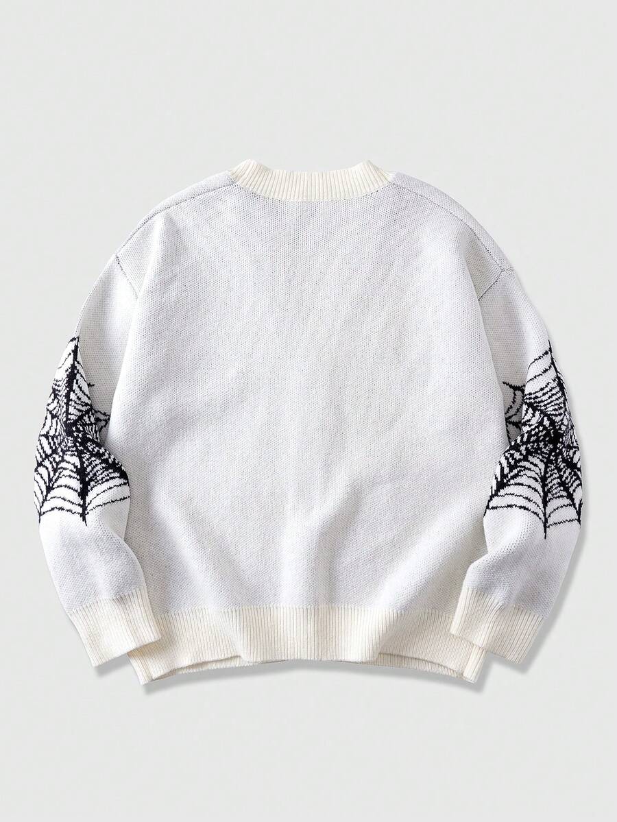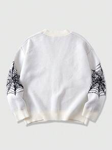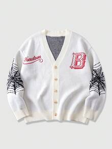 Street Life Men's Casual Fashion Street Halloween Spider Web & Letter Pattern V-Neck Button-Up Cardigan, Autumn/Winter