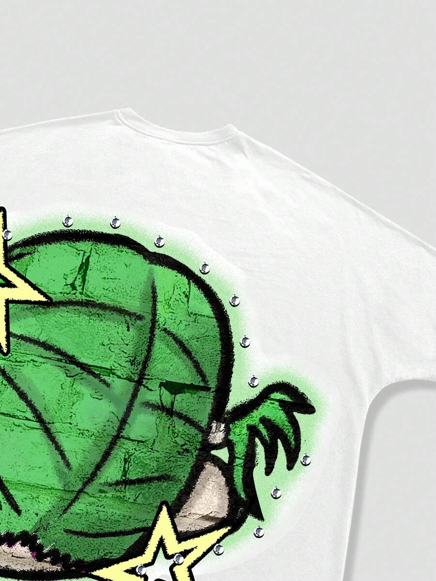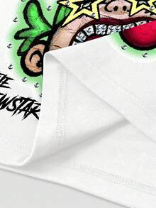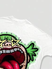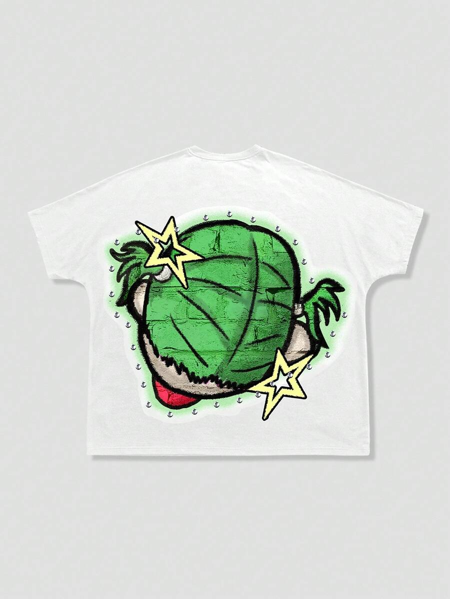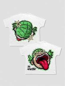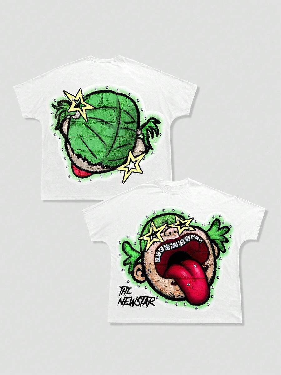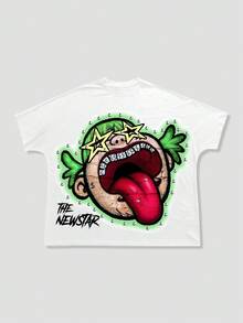 Street Life Men's Casual Fashionable Street Cartoon Bat Print Loose Short Sleeve T-Shirt, Summer