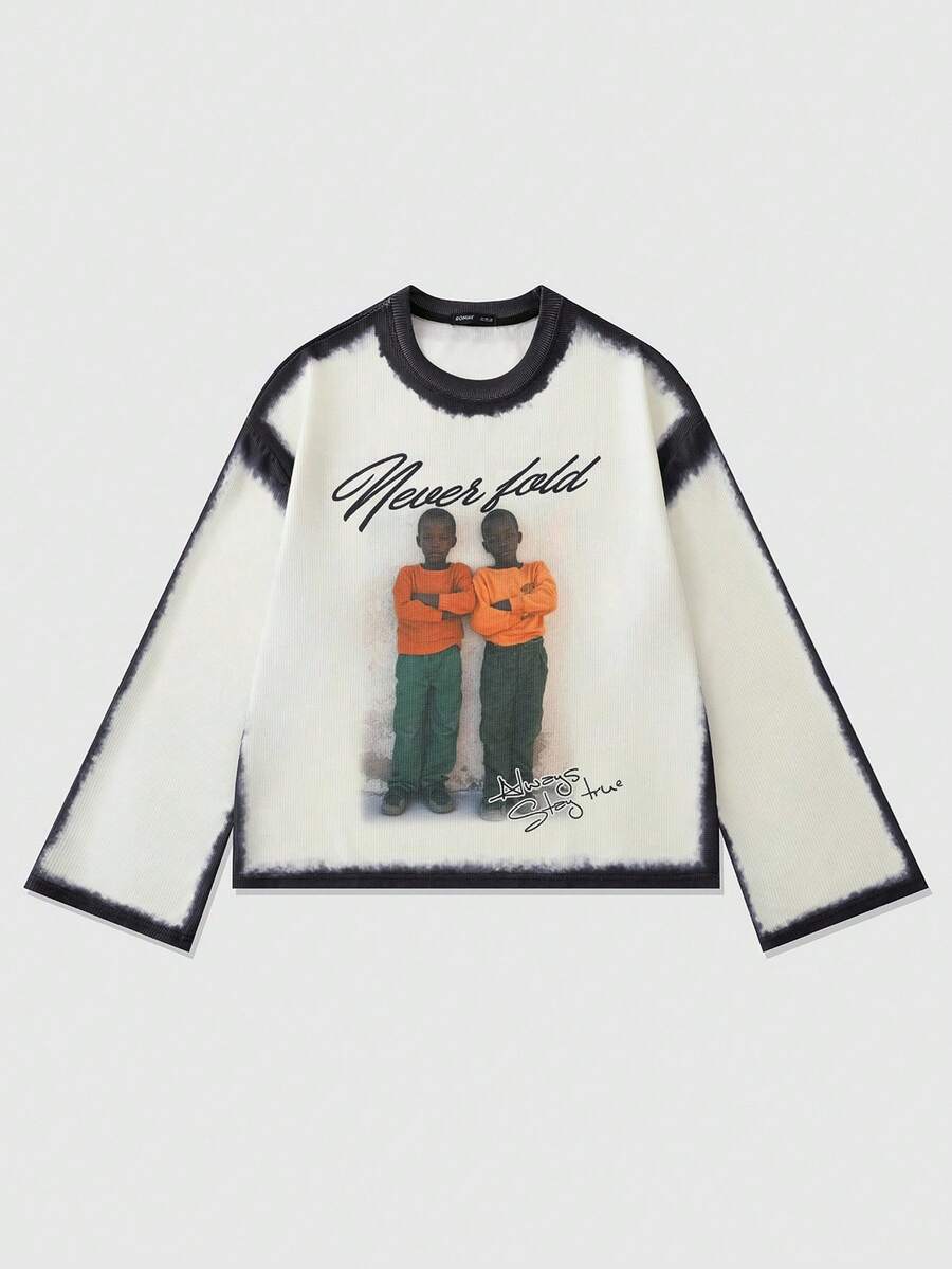 Street Life Men's Casual Loose Fit Round Neck Long Sleeve T-Shirt With Graphic Print