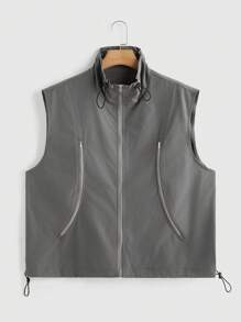 Street Life Men's Casual Plain Color Drawstring Stand Collar Vest