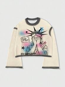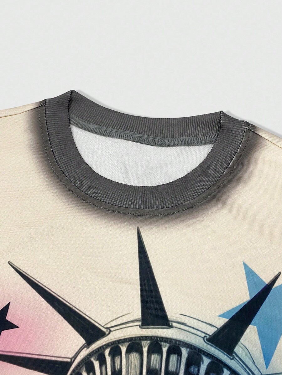 Street Life Men's Casual Portrait Pattern Contrast Trim Flare Sleeve T-Shirt, Autumn