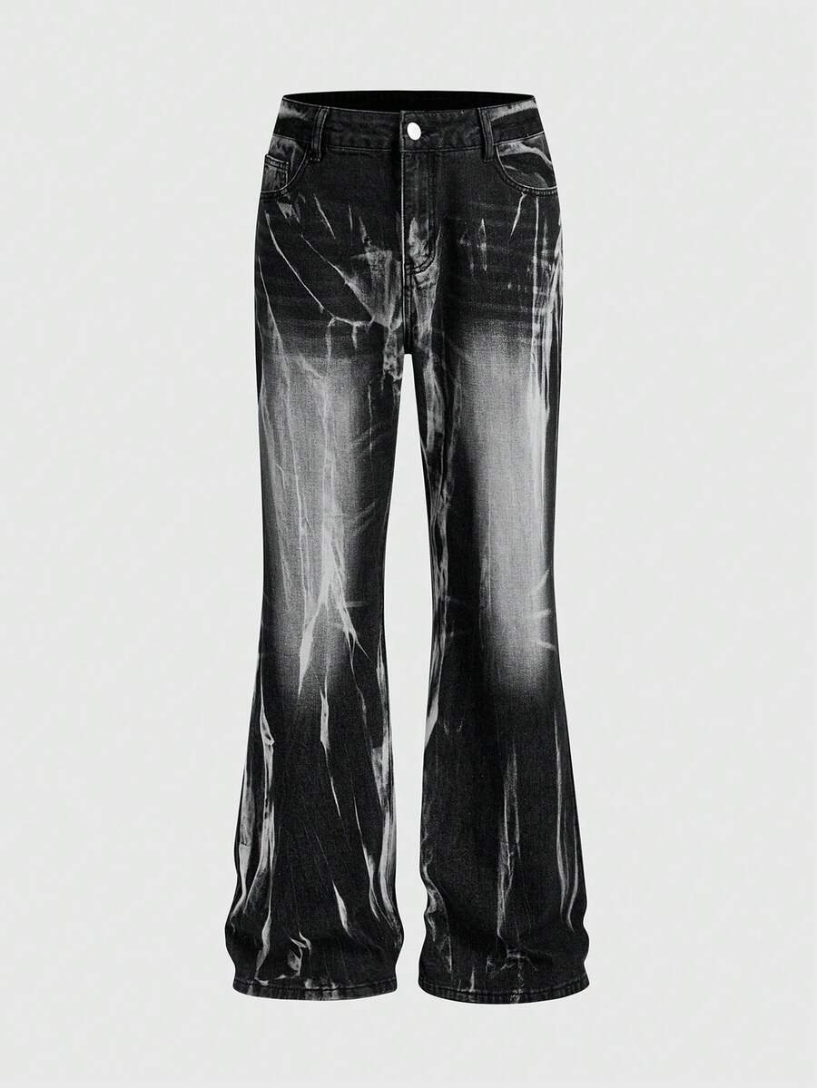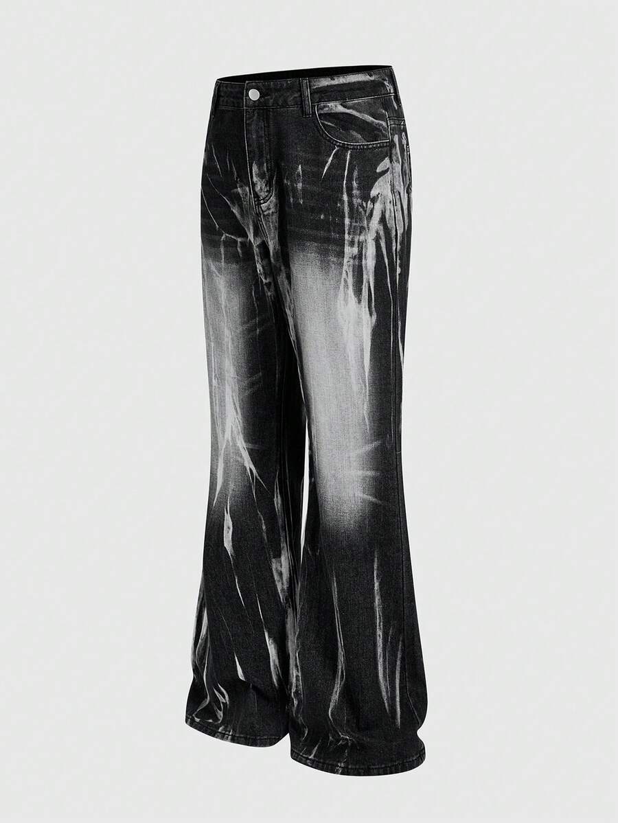 Street Life Men's Casual Punk Street Style Printed Pocket Denim Jeans