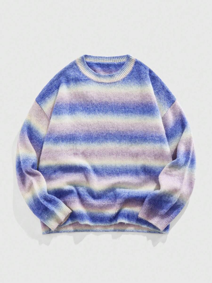 Street Life Men's Casual Striped Crew Neck Long Sleeve Loose Knit Sweater, Autumn