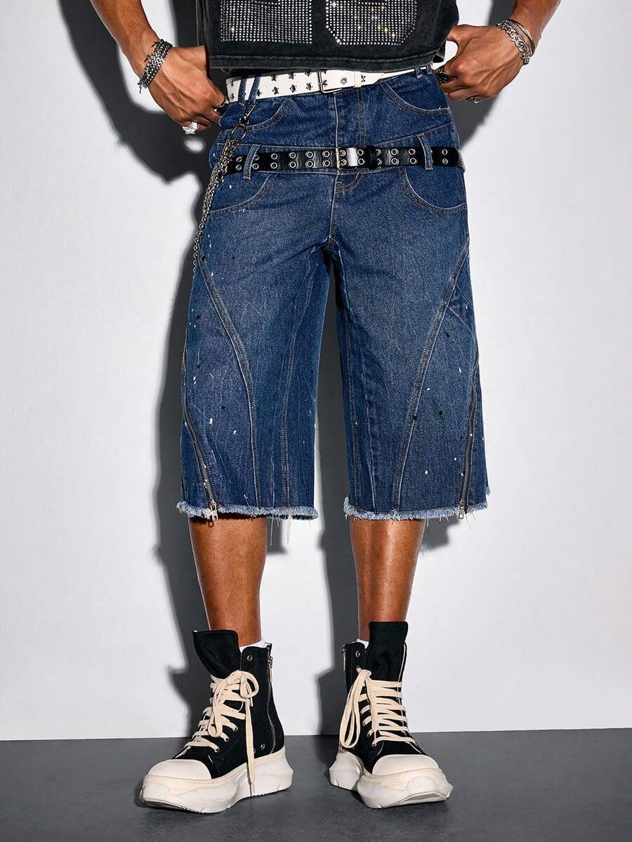 Street Life Men's Casual Washed Denim Shorts With Zipper