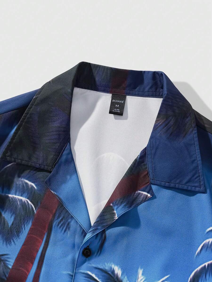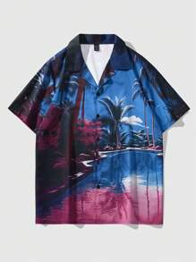 Street Life Men's Coconut Tree Print Short Sleeve Hawaiian Shirt For Summer Vacation