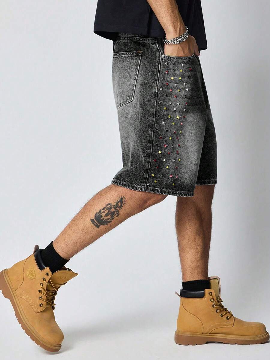 Street Life Men's Colorful Diamond Loose Denim Shorts Jorts
