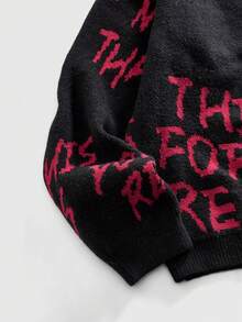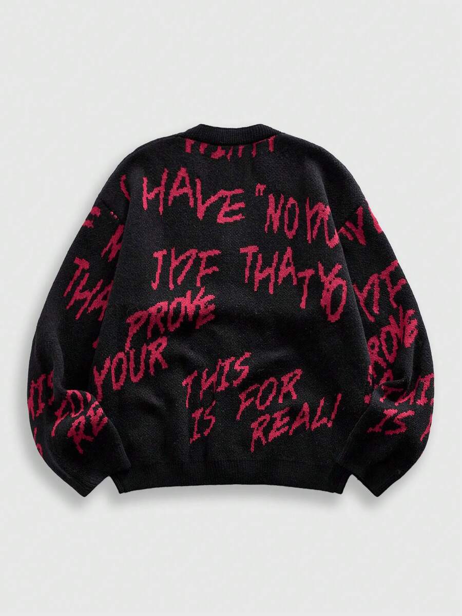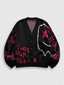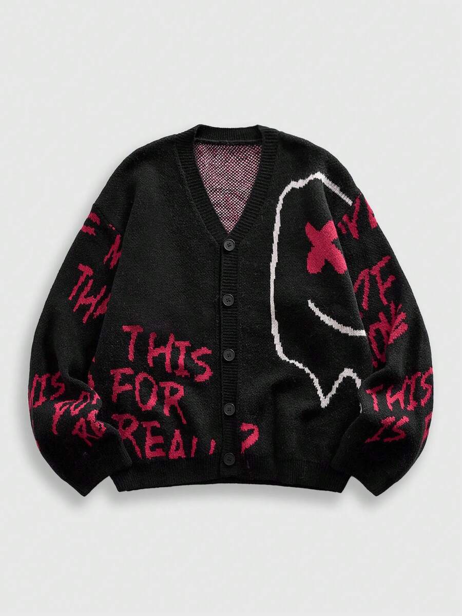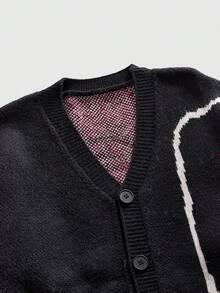 Street Life Men's Contrast Color Graffiti Style Black Cardigan Sweater