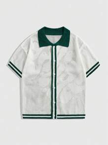 Casual Men's Contrast Color Short Sleeve Single-Breasted Hollow-Out Knit Sweater Vacation
