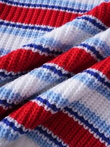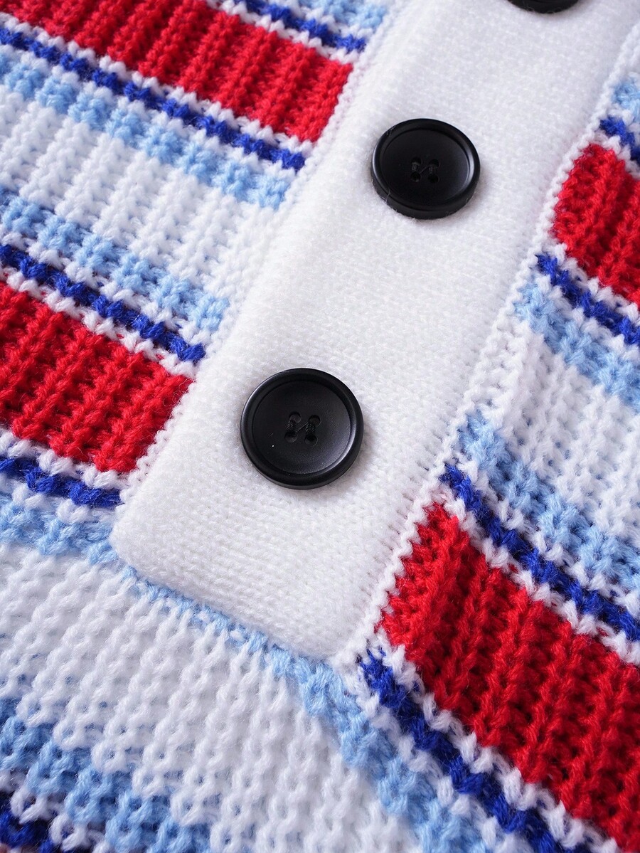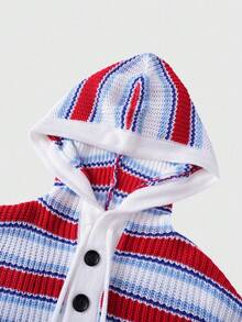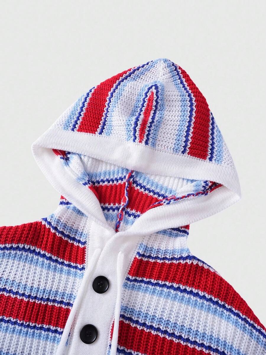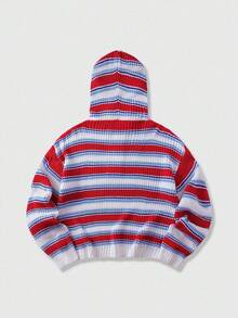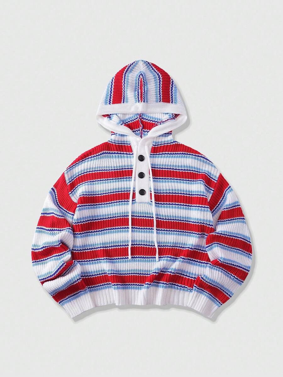 Street Life Men's Contrast Striped Pattern Drop Shoulder Loose Drawstring Hooded Half-Button Cardigan Sweater, Autumn/Winter