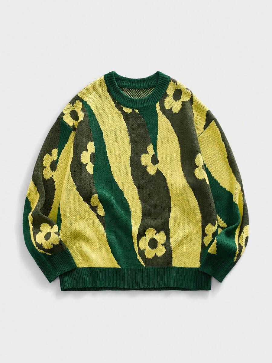 Street Life Men's Crew Neck Multi-Color Floral Knit Sweater, Streetwear Vibrant