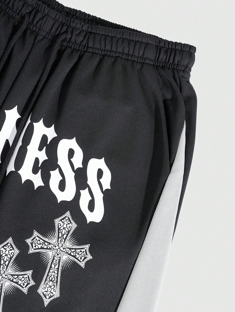 Street Life Men's Cross Print Zip Up Hooded Sweatshirt And Sweatpants 2 Pieces Casual Tracksuit