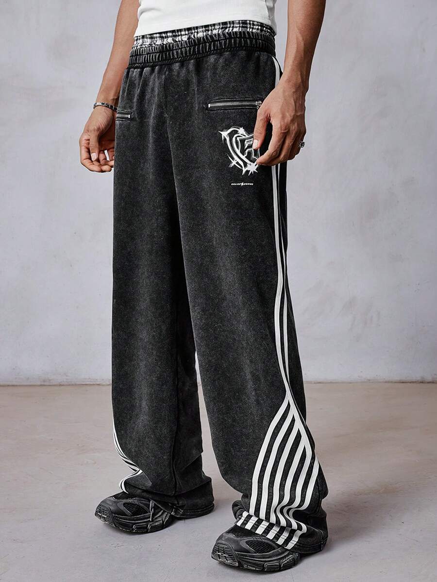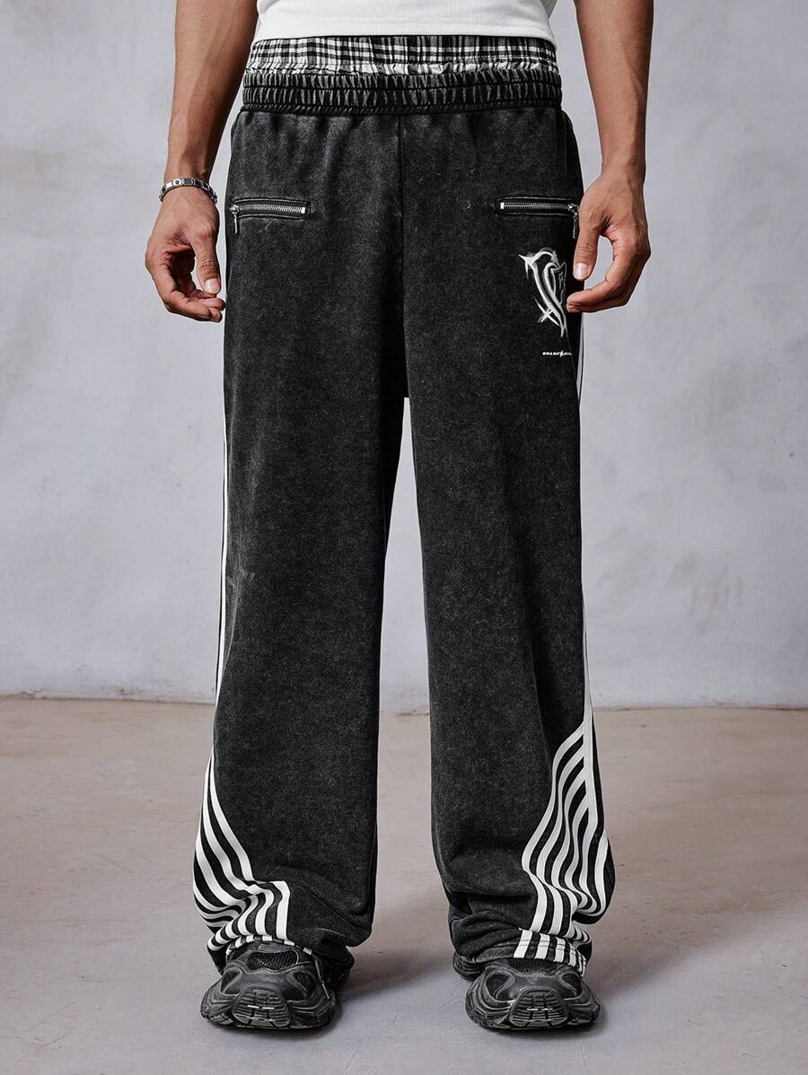 Street Life Men's Distressed Waistband Wash Vintage College Jogger Sweatpants
