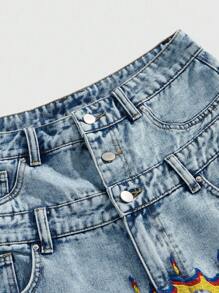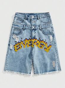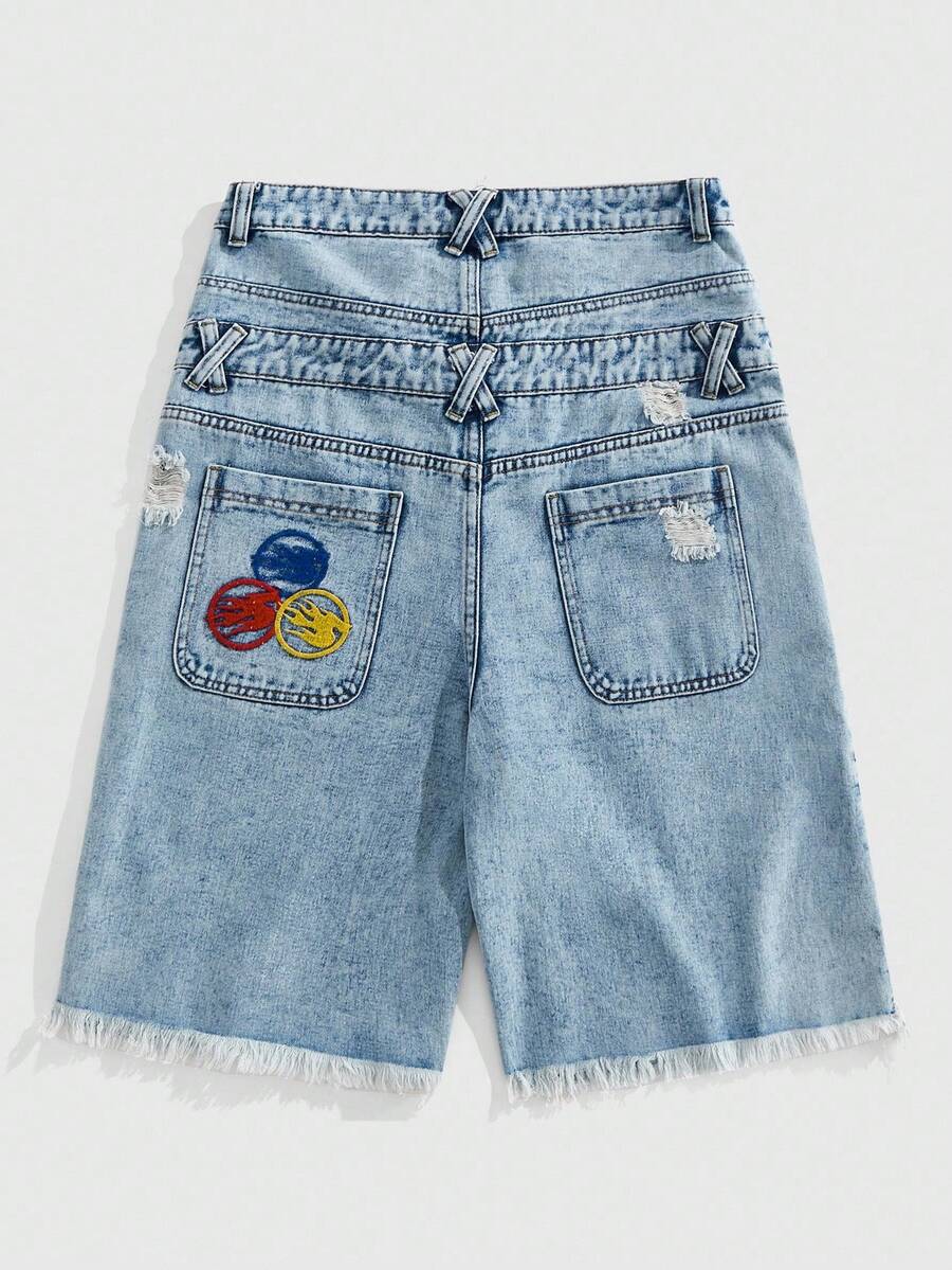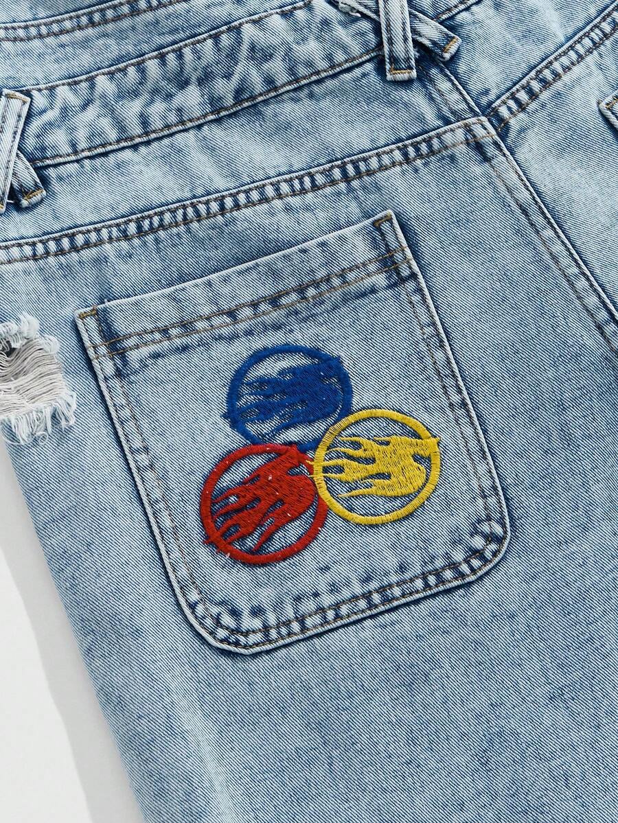 Prep Men's Double-Layer Waistband Embroidered Denim Shorts