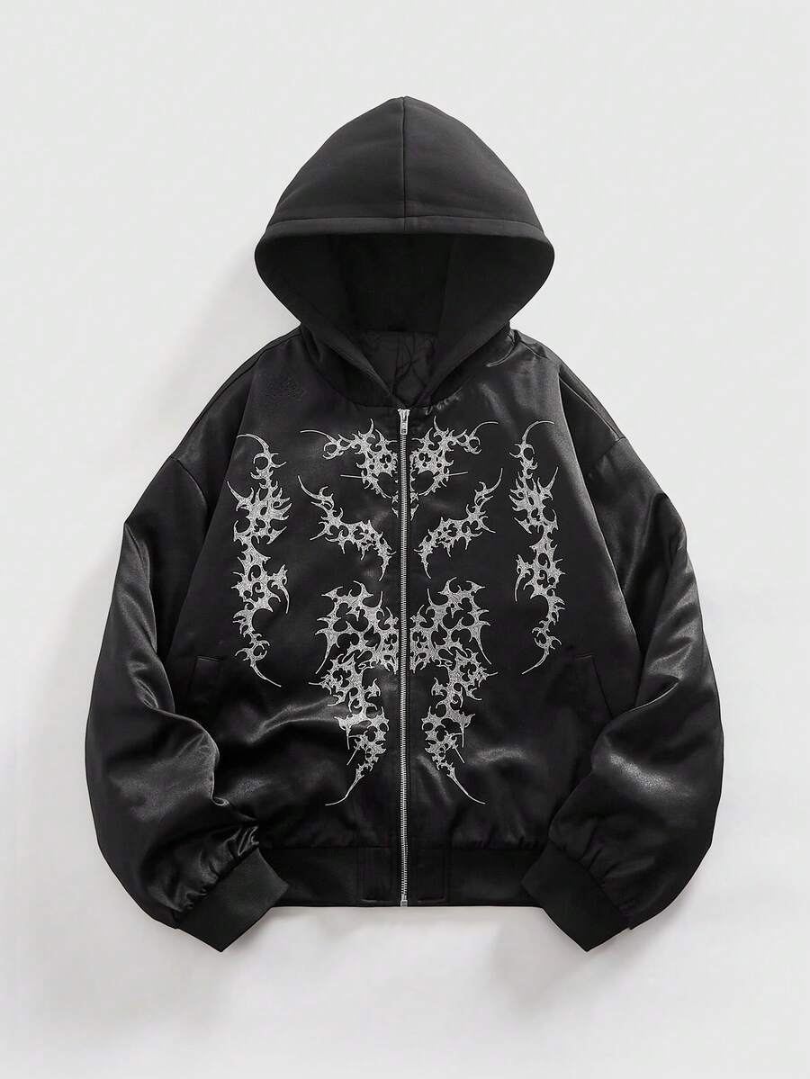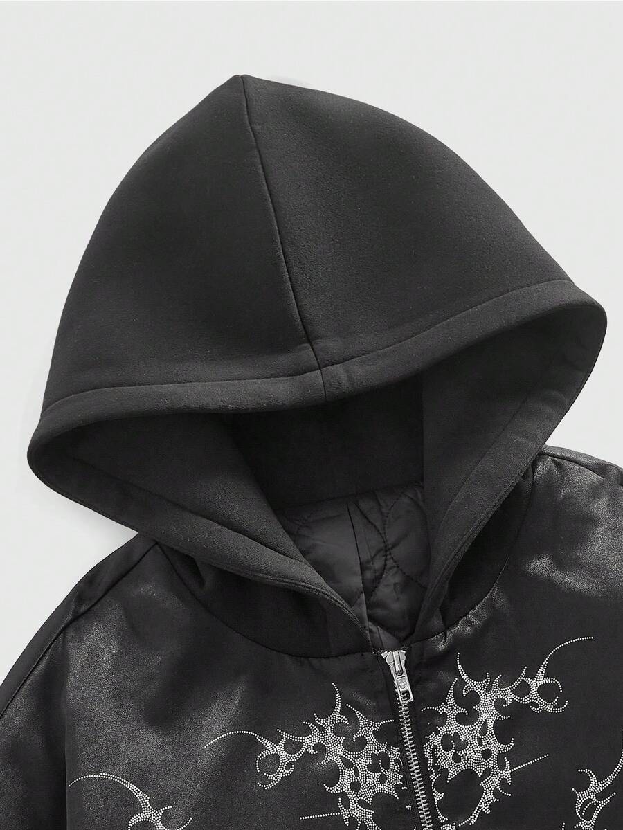 Street Life Men's Drop Shoulder Long Sleeve Gothic Casual Hooded Zip-Up Padded Coat